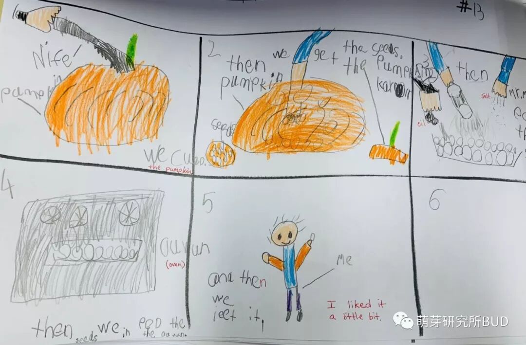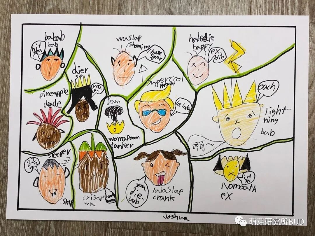 我家孩子那段时间经常喜欢把自己的故事藏在画里,里面都是有情节的,孩子喜欢用画来传递意思,或者告诉我他们画的是什么单词,里面更像是故事,是书法作品,也是孩子的阅读和写作的一部分。