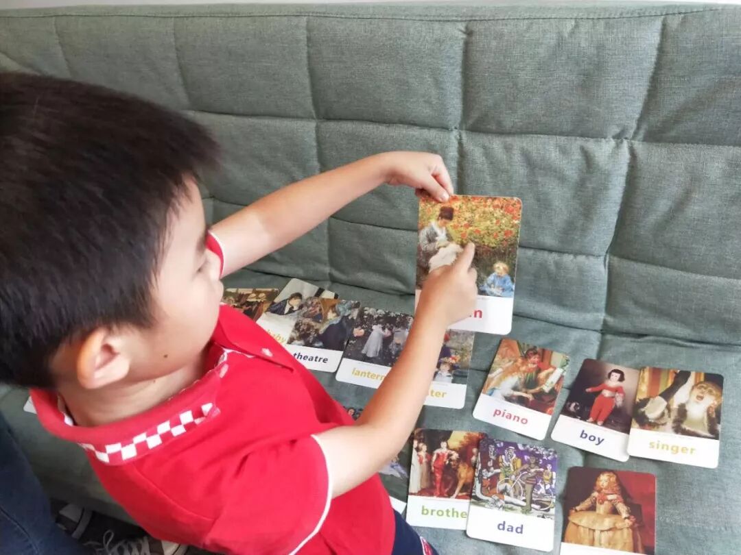 我们家有一个习惯是孩子随处都可以看到笔,各种颜色的笔,以及白纸,让孩子只要有空,或者有想法,就可以拿起笔和纸来创作,同时家里也有一个区域是专门给画画的,里面是很多大师的作品,以及画画材料区,孩子只要想去看或者取,就可以去拿。