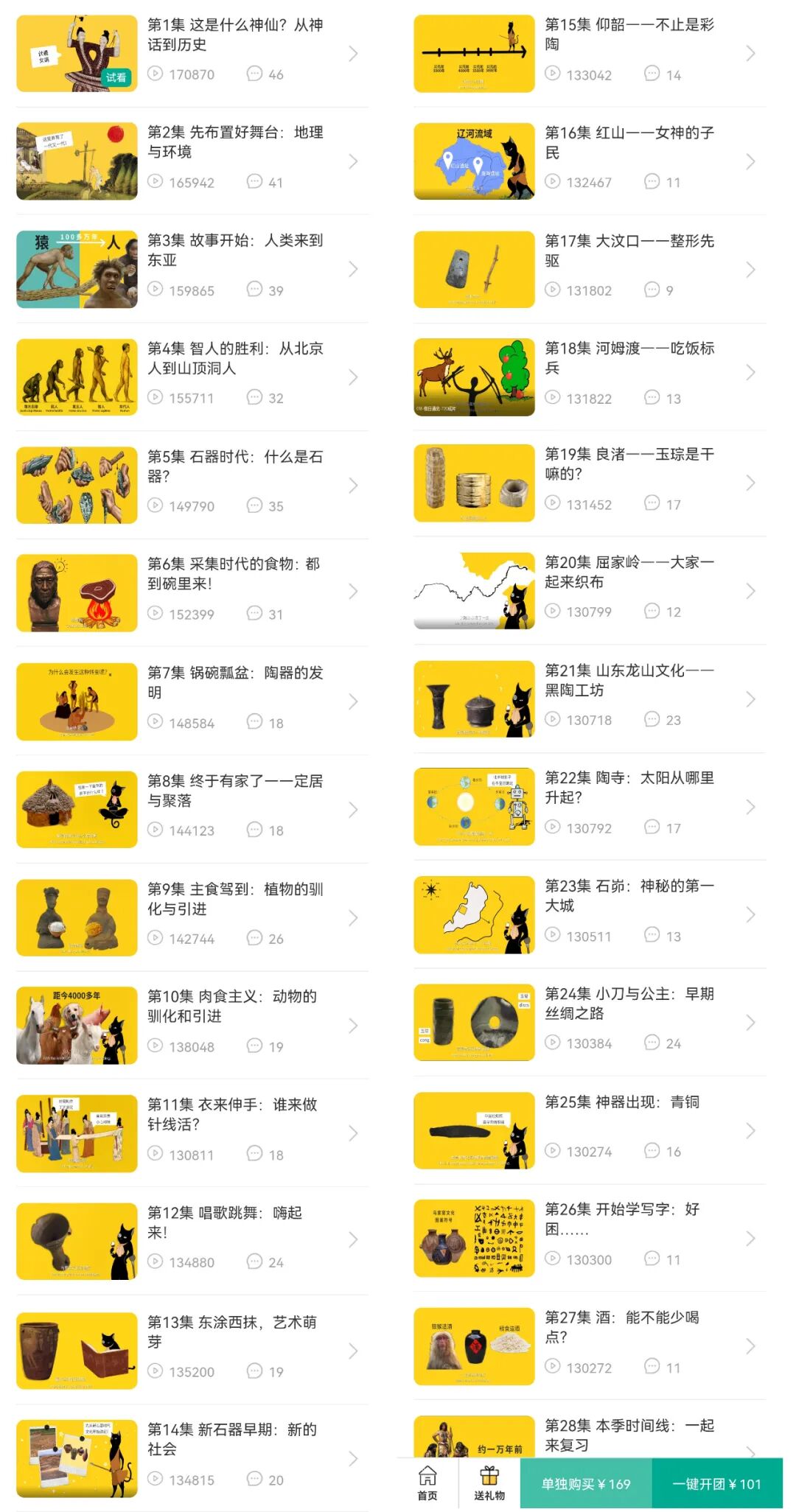 要知道,单独买一季中国通史的官方价格是169元,而本次我为大家争取到的是为期一个月的免费观看。第一季的课程一共28集,每集8-10分钟,一个月的免费观看时间应该是能看完的。