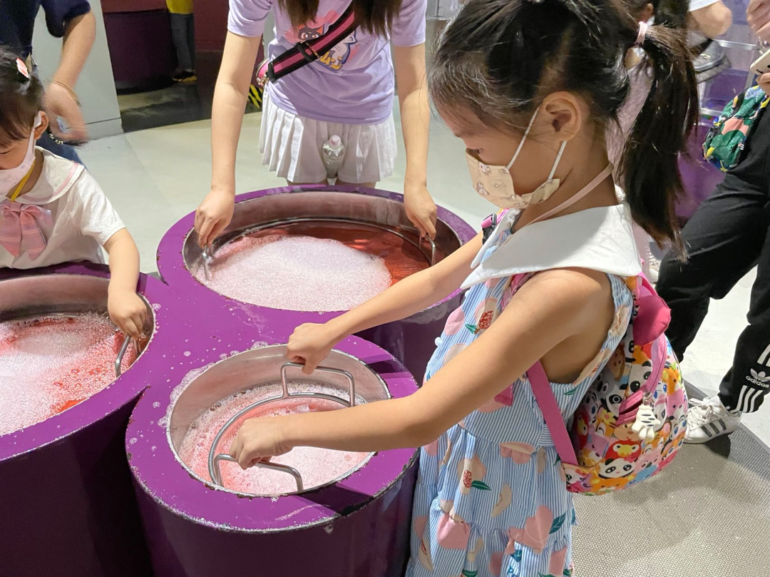 当时上海科技馆好看的那么多,但小西很早就锁定了彩虹乐园,并在这里停留了很长时间,显然对于小西来说,这类“动起来”的项目更有意思,她既是观看者也是参与者。