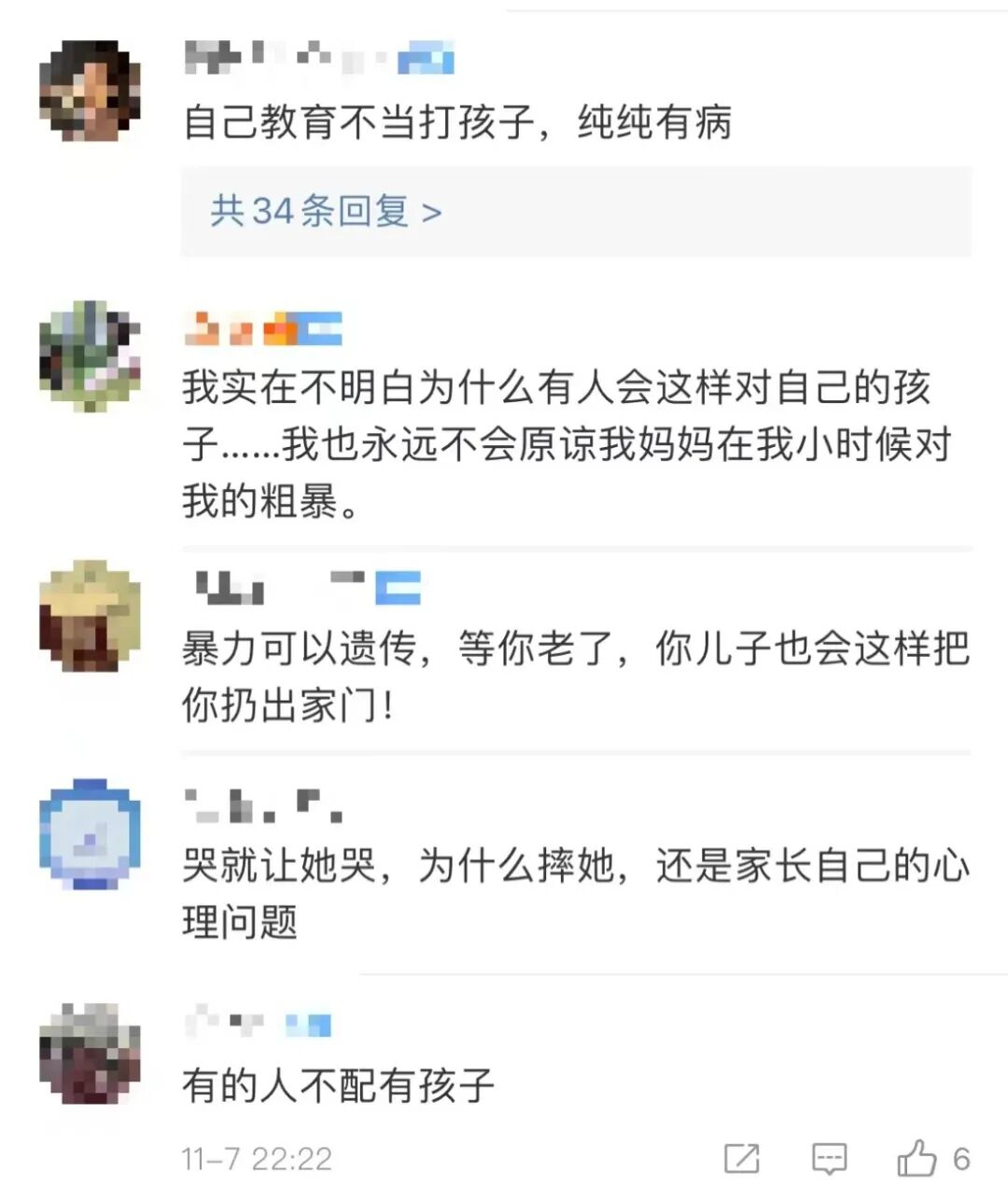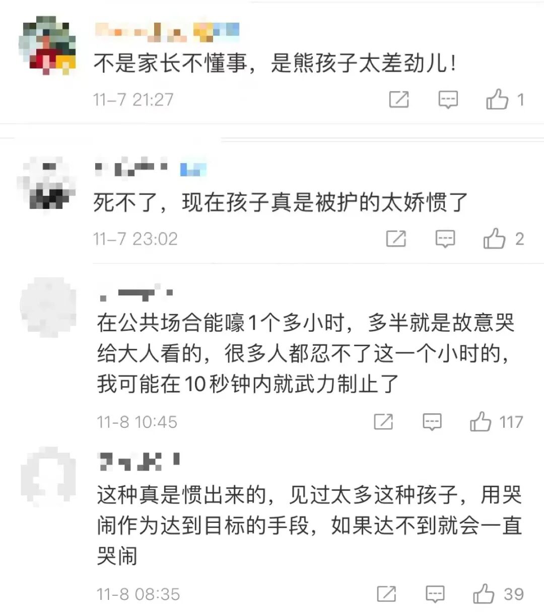 还有非常多的评论是这样的观点,“孩子用哭闹来控制家长,家长就是应该打”: