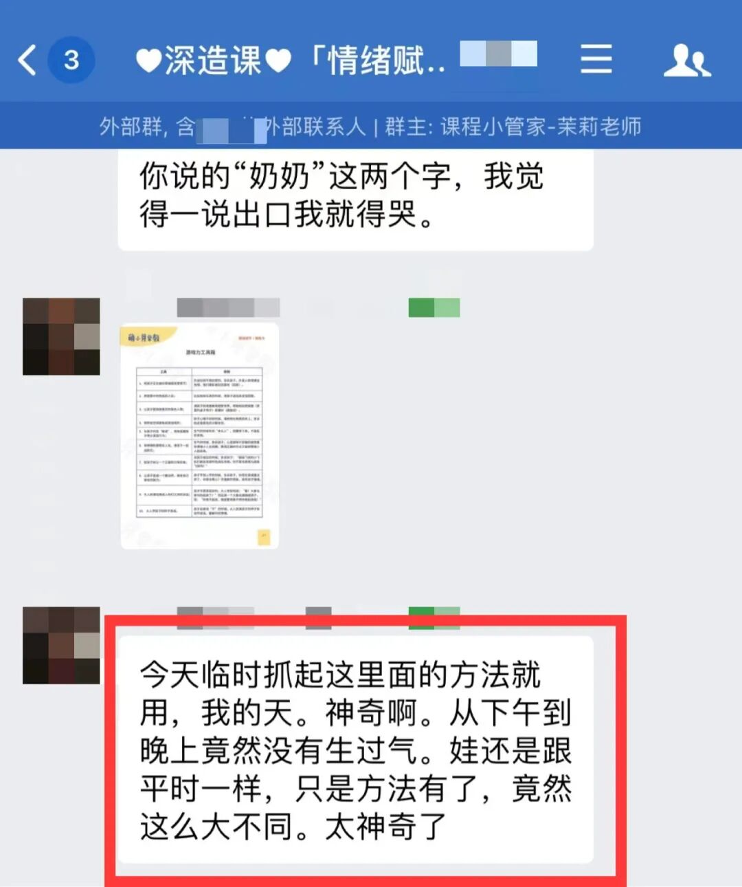 像在「亲子情绪管理赋能营」里,30个工具,不管哪一个,都经得起考验和推敲,只要去试,然后我们帮助你不断找到优化和提升的方法,30个工具就会经过你与孩子的尝试,创造性地变成50个、60个,无穷无尽。
