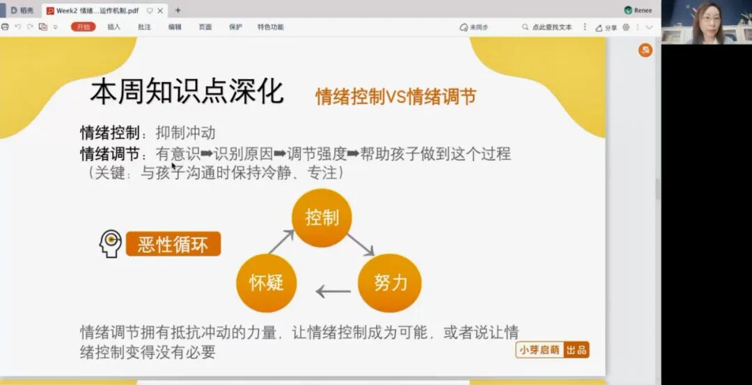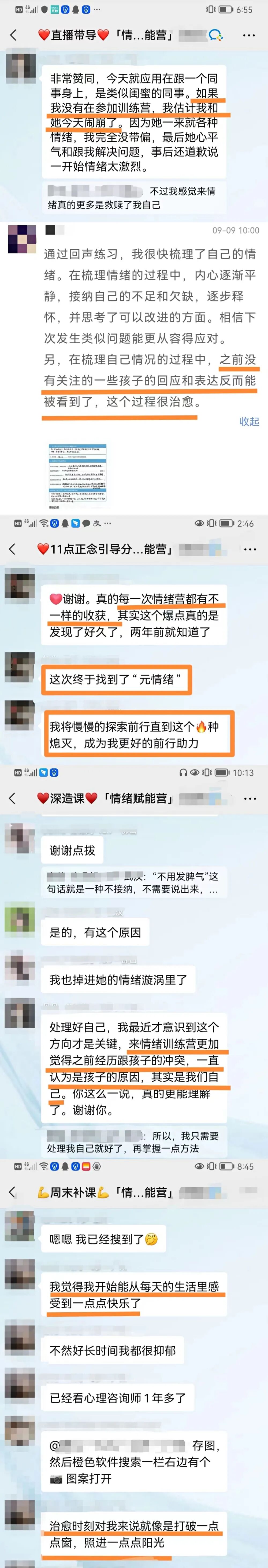 后来这位妈妈加入了我们第一期的「亲子情绪管理赋能营」,跟着课程学习寻找自己的“元情绪”。