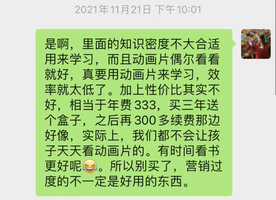 像前段时间有一个产品爆火,很多读者来问我听说里面有上千集课程可以学,问我有没有下单的必要,我的态度是不支持的。我不会给孩子用的东西,我也不会推荐给我的读者。