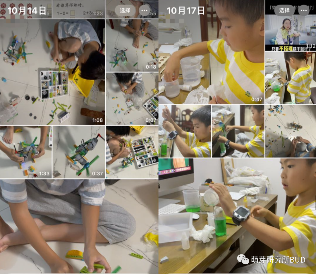 看着照片也感慨,始终还是两个小学生,相册里大多都跟他们的学习状态有关,不是做作业,就是在读书,要不,就是花上一整天的时间,去捣鼓自己的设计。哥哥迷上了机器人和编程,弟弟迷上了科学实验。