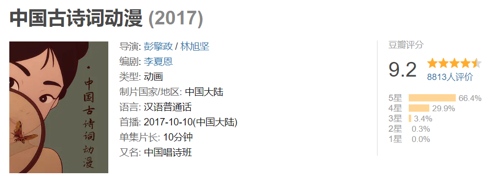 每个短篇围绕一首诗,用细腻的中国水墨画风,将古诗、绘画和动漫完美结合。