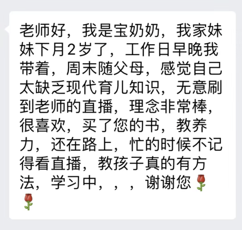 在直播间前后,我也听到很多家长给我分享的故事,比如职业是司机,边开车边听我的直播,虽然不能参与现场互动,但感觉自己上班时间也很充实。