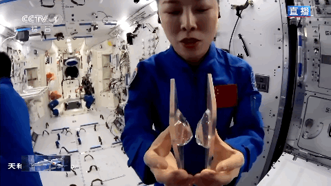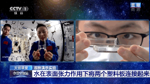 在这个实验中,王亚平轻松做出了在地球上难以实现的“水桥”。