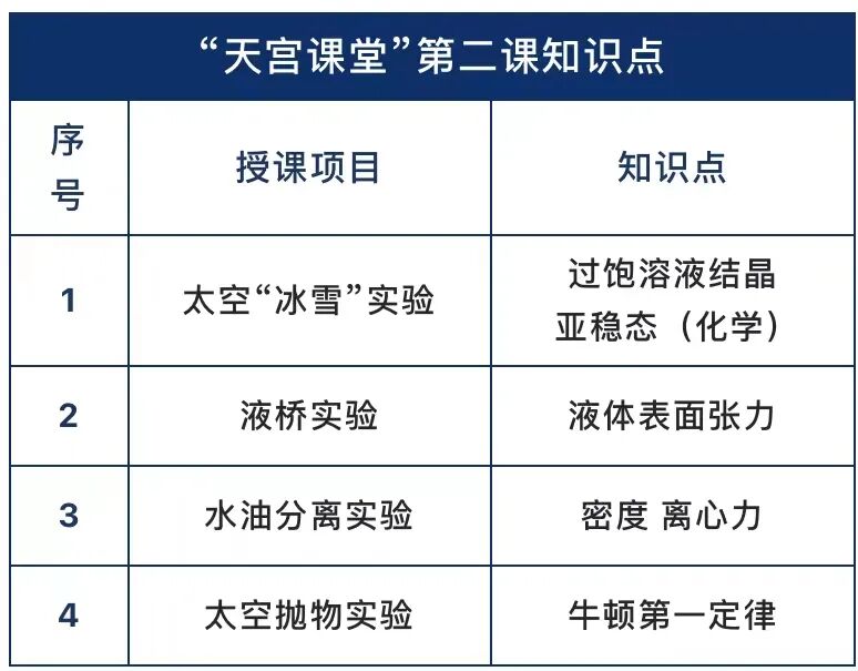 好了,回到正题。作为科代表,我先给大家整理出“天宫课堂”第二课的物理化学知识点(都是中学考点,以后可能会在试卷上出现哦)▼