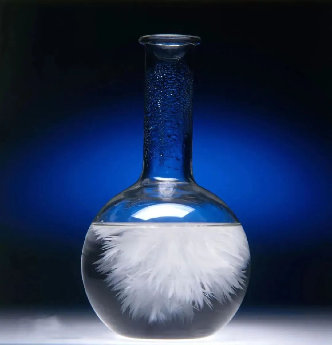 在太空实验中,“过饱和醋酸钠溶液”小球正处于“亚稳态”,十分不稳定,当受到某些刺激(比如加入晶体或者晃动)时就会失去平衡,过多的溶质就会结晶放热,变成了我们看到的“冰球”,但其实这个球是热的哦。