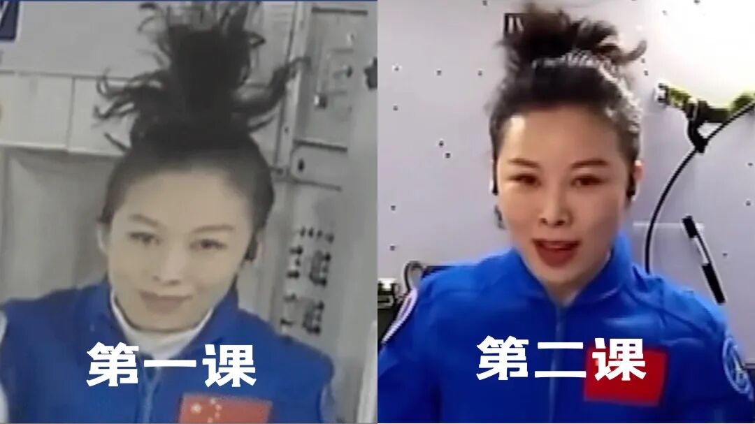 时隔半年,主讲老师王亚平的“冲天辫”,依然吸引着我家俩娃的注意力。