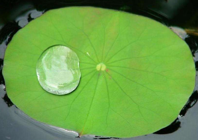 比如清晨凝聚在叶片上的水滴、就是在水的表面张力作用下形成的。