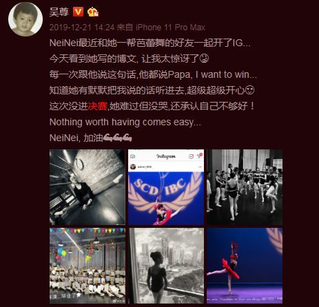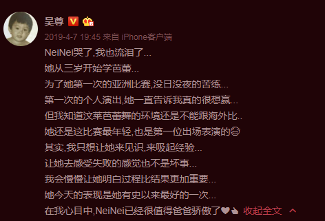 之前吴尊就分享过2019年4月份,自己的小女儿Neinei参加比赛,输了芭蕾舞,于是哭鼻子,吴尊说,“我希望接下来可以帮助孩子知道过程比结果更加重要”,但现场看着孩子崩溃流泪,吴尊的第一反应,也是很想跟着孩子一起落泪。多心疼啊。▼