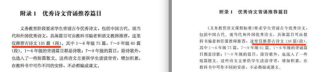 优秀诗文背诵推荐篇目基本一致,2022年还删掉了一篇原本在9年级的推荐篇《河中石兽》。