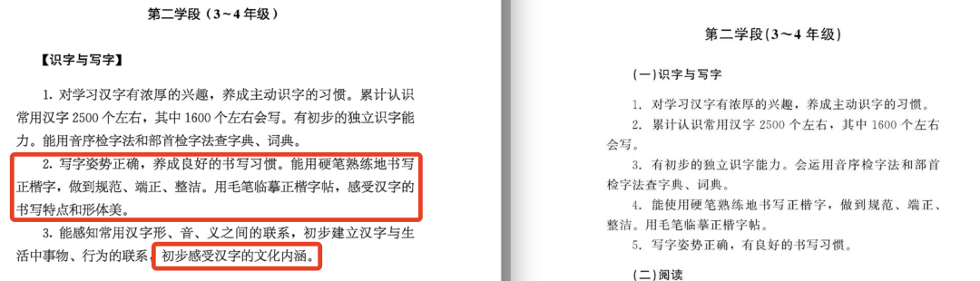 和2011年相比,2022年版本把对汉字的要求进一步细化,包括提出对书法、笔顺、写字美感的要求。