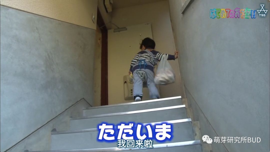 但,小小的晴矢,出发前的信心,都在要和妈妈分开的时候不见了。一个人走到楼梯转角处,像才意识到妈妈不在自己身边,回头说: