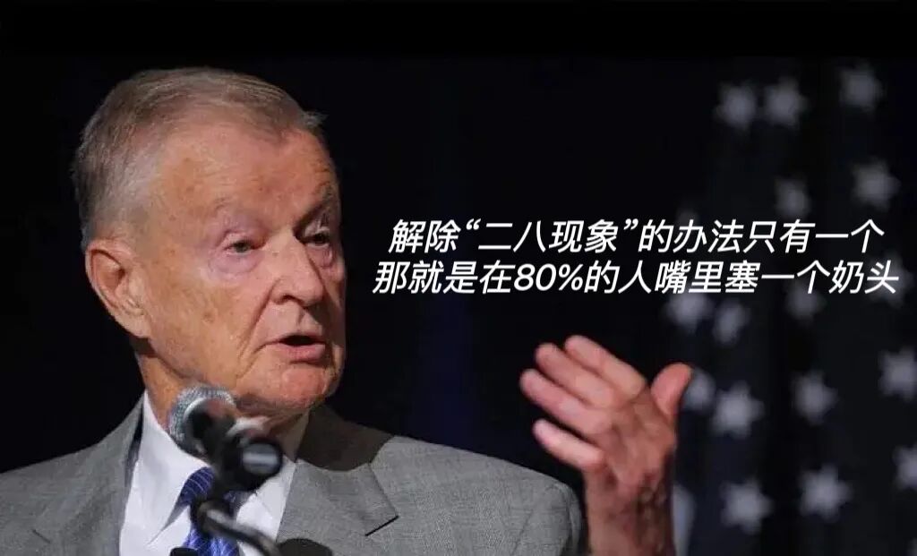 1995年,美国一个战略家提出了“奶头战略”,轰动一时。他说,未来社会贫富分化越来越严重,穷人越穷富人越富,中间一定会有矛盾,怎么处理这种矛盾?