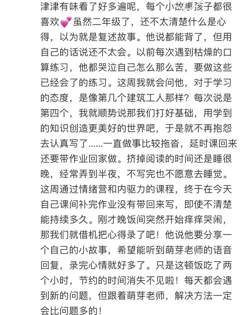 在我的自驱力年课中,我看到了很多小孩子,正努力着、积极地用最纯粹的心思去感受学习,真希望我们大人都能好好地呵护着这份心意,让孩子在学习和成长路上,一直收获相伴的爱意,而不是冰冷的推力。
