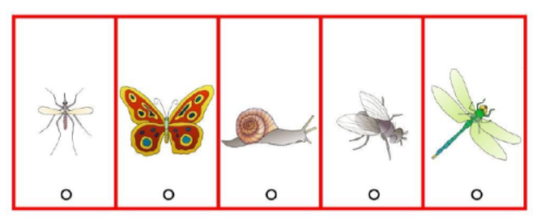 这一题的答案是第三个蜗牛的选项,因为其它的动物都有翅膀,唯独蜗牛没有。