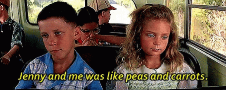 配对是指在日常生活中常常成对出现的事物,欧美文化中就经常涉及到配对,比如 “豌豆和胡萝卜”就总是一对。“Peas and carrots”来源于电影《阿甘正传》的台词:“From that day on, we was always together. Jenny and me was like peas and carrots.”