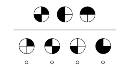 第二道题类似于我们的算盘珠,从左往右由数字1依次递增一个(1,2,3,4,5)。所以在五个珠子之后应该是6个珠子,答案选第二个。
