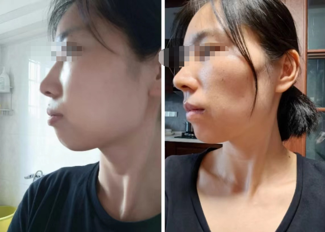 有的人是下面变凹了,有的则是上面变凹了,面部轮廓都不如戴之前显得流畅了。