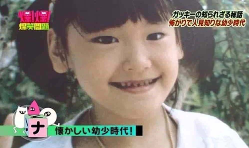 从新垣结衣6岁的照片来看,当时的她牙齿稀疏且整齐度低,并存在明显的下兜齿 👇