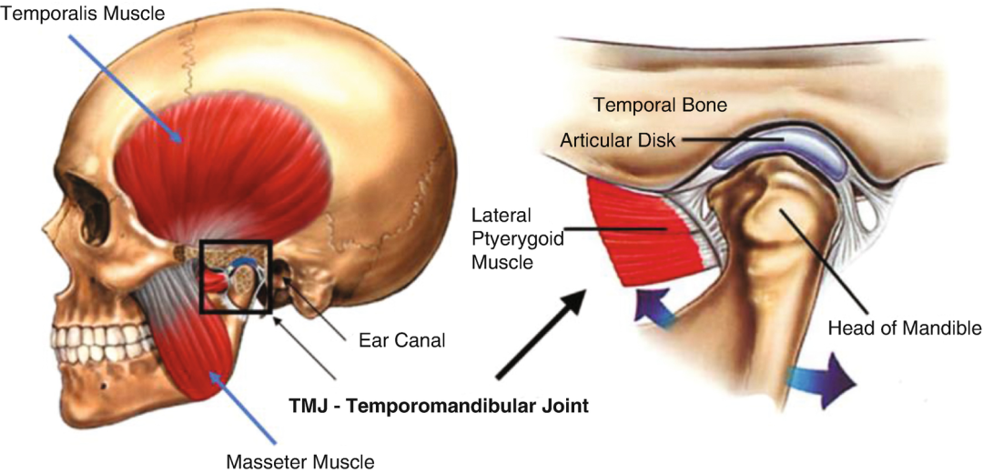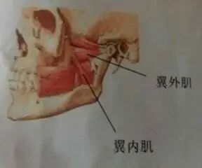 △ 负责下颌左右移动的肌肉叫做翼内肌和翼外肌,位置和咬肌很近。