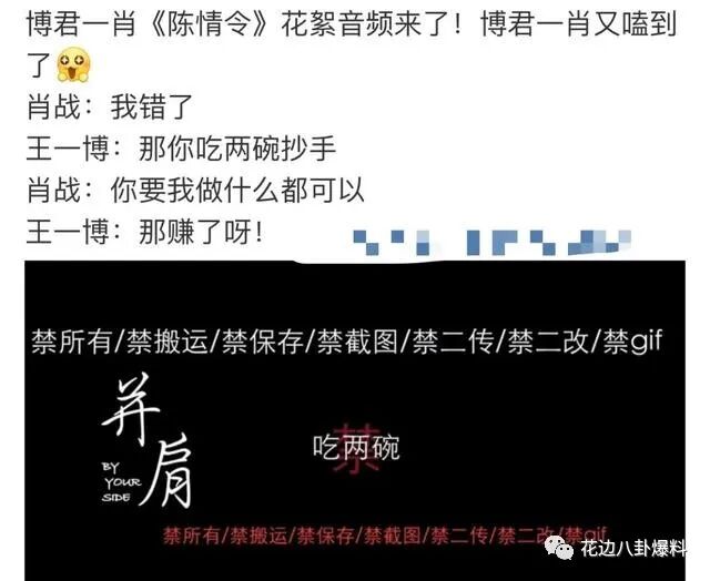 有网友放出了肖战和王一博的互动花絮,在花絮中,王一博要罚肖战吃两碗抄手,博君一肖时隔一年再次发糖,引起了不少cp粉的狂欢,微博搜索抄手,相应的关键词也带上了博君一肖。