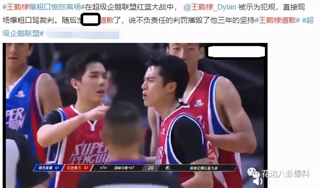 可万万没想到:王鹤棣却在场上,因为犯规被罚判后,直接在现场爆粗口(看那段视频可以很明显地看出来王鹤棣骂了句“sb”)!