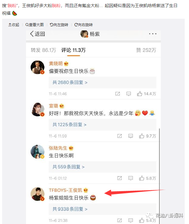 3、王俊凯因杨紫送生日祝福而掉粉?