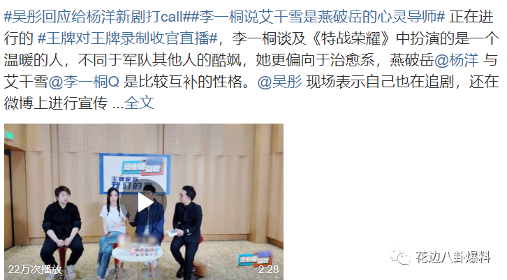 当时给人家打完call,吴彤就带着话题上了热搜,这速度真是比艺人还艺人…其实他行动快速也是有原因的,一方面是上面提到的新剧关系、以及对杨洋本来就挺有好感,另一方面就是前阵子吴彤就有在接触杨洋这边的时间,希望能邀到他上新一季的《萌探》,虽然目前还没确定是否会参加,但艺人那边也没直接拒绝并表示会考虑,所以他自然要表现的更明显些,如果之后邀约上了到时播出肯定又是话题热搜频繁宣传。