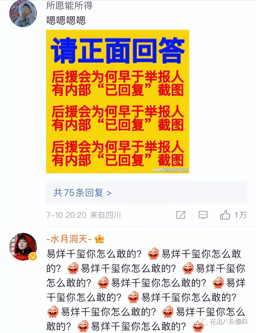 在没有团粉控评的地方,不少路人粉丝都在以“四字”的称谓暗讽易烊千玺。认为TFBOYS发新歌根本就是子虚乌有的事情,其目的只不过是为了帮易烊千玺躲过此次的网友指责。