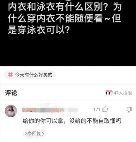 “为什么穿内衣不能看,而穿泳衣却可以?”这有啥区别啊!哈哈哈