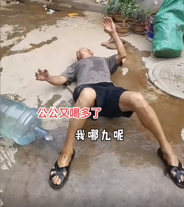 流出来的水直接冲到了公公的身上,将公公的裤子和鞋全部打湿。可公公对此并未理会,而是躺在地上直转圈,双手左右挥动,嘴里不停地念叨着我的酒呢,我的酒在哪。