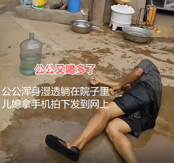 可是这天公公又出去喝了酒,再一次醉醺醺地回到了家,或许是由于酒精的原因公公有些头昏脑涨,到了院子里便直接躺在了地上。