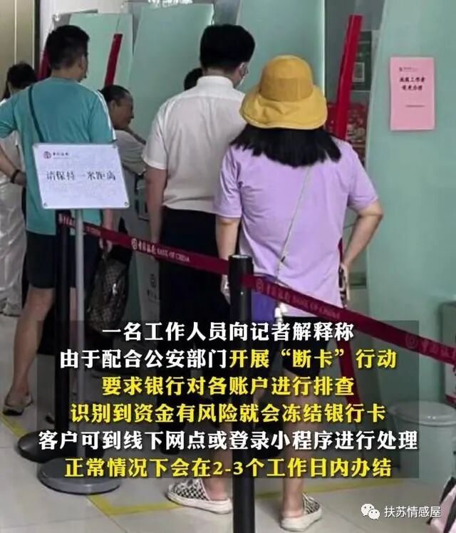 有工作的人只是麻烦一点,但这其中牵扯了很多人,有些人是没有工作的宝妈,也没人给他们买社保,去到银行没法解封银行卡,只能申请销户!