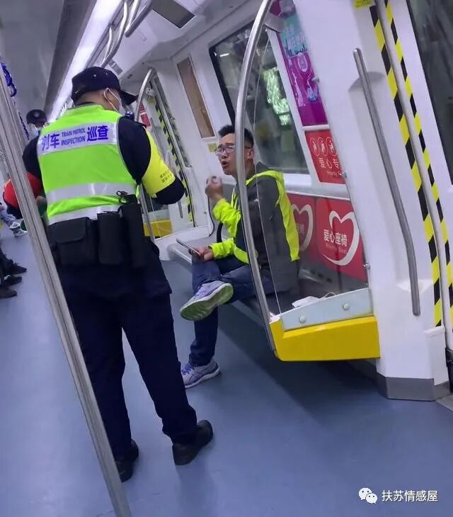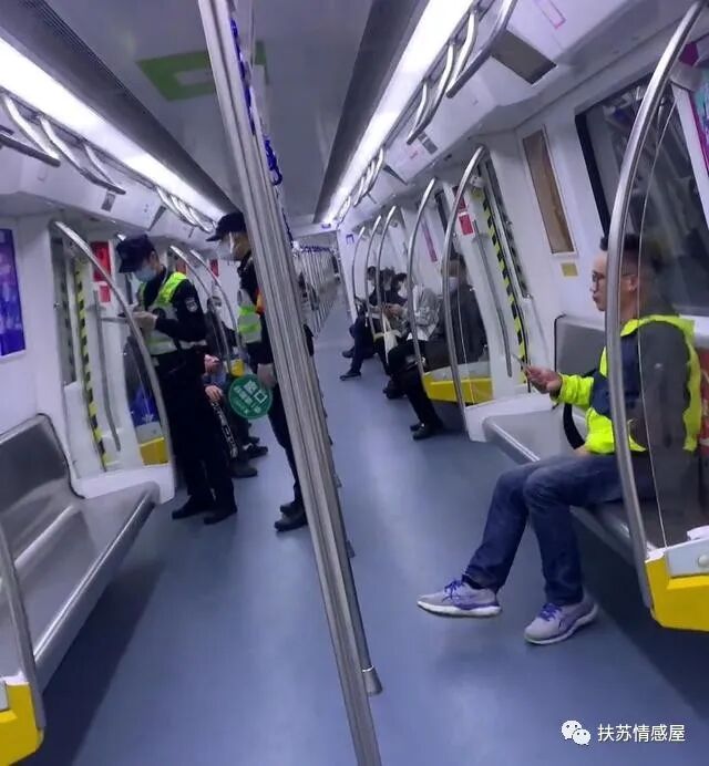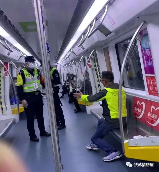 保安看到他情绪比较激动,好言好语地跟他解释,保安跟他说虽然现在放开管控了,但口罩还是要佩戴的,地铁上不止你一个乘客。
