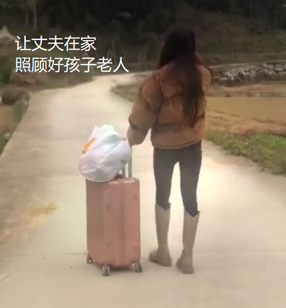 据悉,当初这位女子并未外出打工,而是和丈夫一样在家中谋生,只是现如今生活压力这么大,孩子和老人又无时无刻都需要钱,所以在一番商讨之后,女子决定外出打工,让男子继续在家工作,这样就算是女子在外面没有闯出来名堂,也还有着男子挣钱养家,不至于一蹶不振彻底失去收入来源。