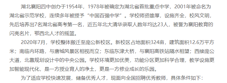 2.网上应聘。应聘者请于2022年11月27日前将电子简历发电子邮件到xyszlxc@163.com,学校将根据材料情况电话通知面试及考核。
