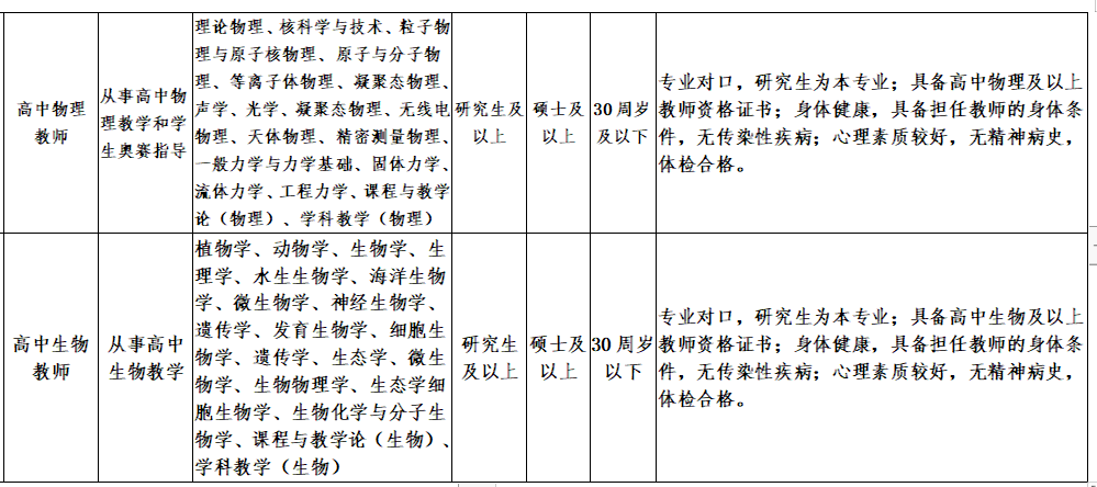 (一)人数:高中语文、数学、英语、物理、生物教师若干。