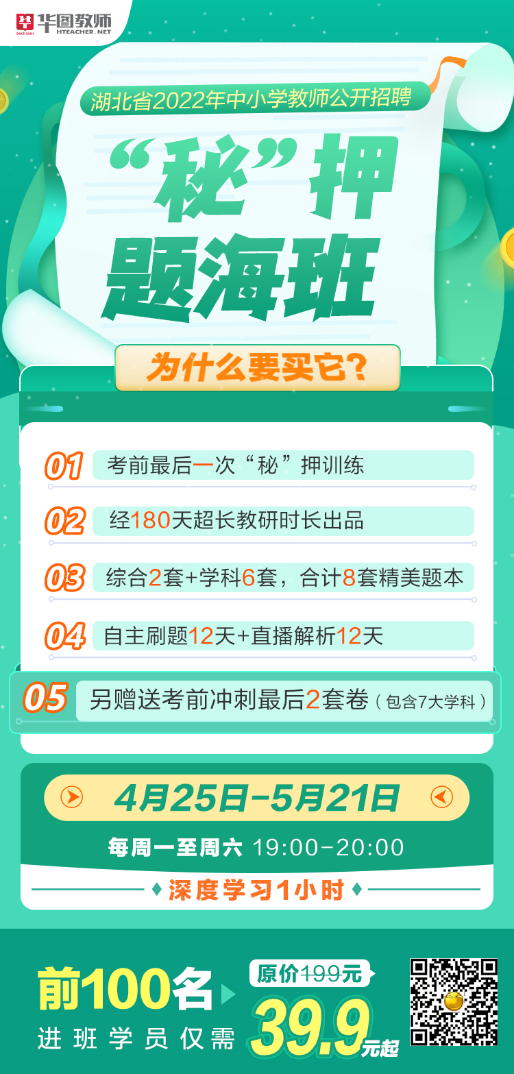 2022湖北省教师统招考前最后一次“秘”押训练,等你来学现在进班仅需39.9元起特价仅剩500个名额