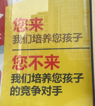 焦虑之下,补习热“席卷”了众位家长。课外辅导班也深知家长弱点,广告语直击家长们的内心。