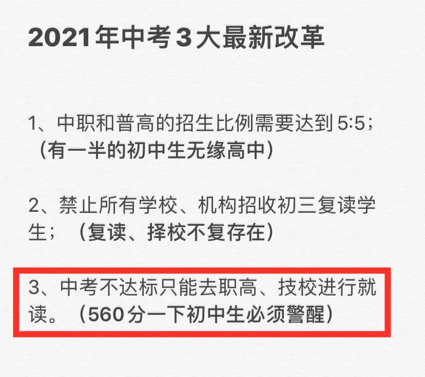 以下这是2021年中考3大最新改革来看:同一届毕业生中,一半的孩子上不了高中呢↓