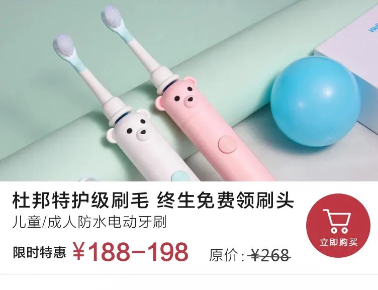 现在购买,终身免费领取替换刷头(每年寄送4只刷头)↓
