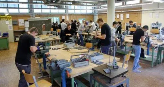 德国的企业和学校联办职业教育的比例高达20%,在德国的工厂、公司、政府机关……都能看到实习的学生。