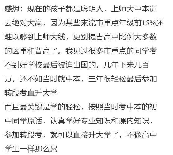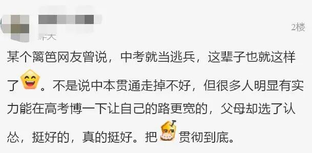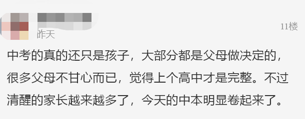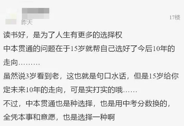 中考成绩一出来,关于是否让孩子报考中本贯通,家长们也表达了自己的看法。
