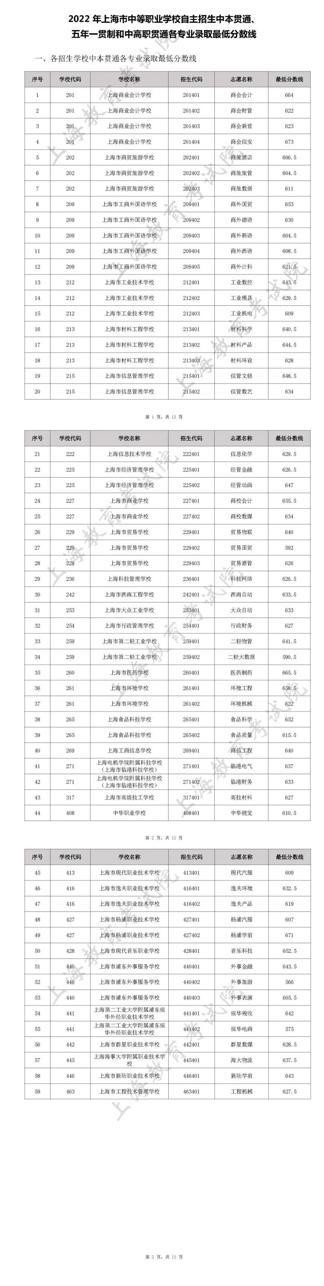 8月9日,上海市教育考试院公布了2022年中本贯通各专业的分数线。