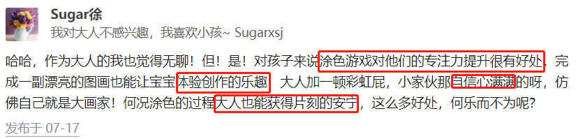 至于涂色本对孩子精细动作和耐心等方面的促进作用,其实可以通过其他活动进行发展。