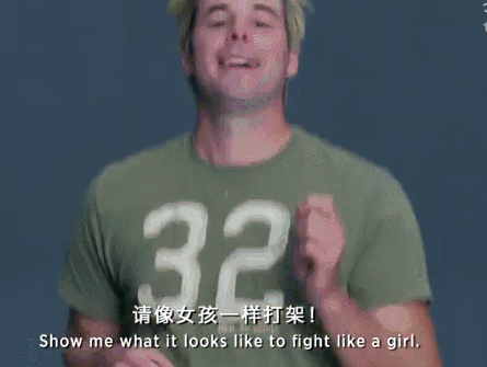 接着还有“像女孩一样丢球”“像女孩一样打架”,青春期和成年的男女做出的动作简直就跟之前网络上很火的“捶你小胸胸一样”做作。